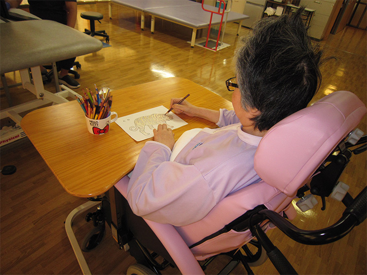 身体や精神に障害をもち、「もう少し自分で生活できるようになりたい」、「自分のことは自分でしたい」と思い悩む方々に対して、作業療法士とともに手足や 身体を動かす他、手芸や日常の生活で行われる動きも利用して、その方が最も自分らしい生活を送れることを目指して治療していきます。